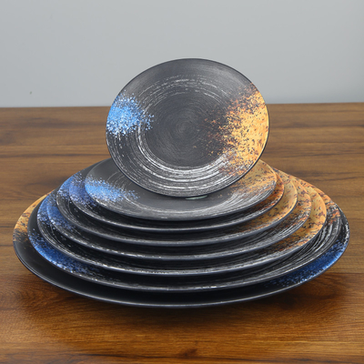 বৃত্তাকার মেলামাইন প্লেট স্পেসিফিকেশন সুশি মেলামাইন ডিশ স্টক উপলব্ধ বিভিন্ন আকার